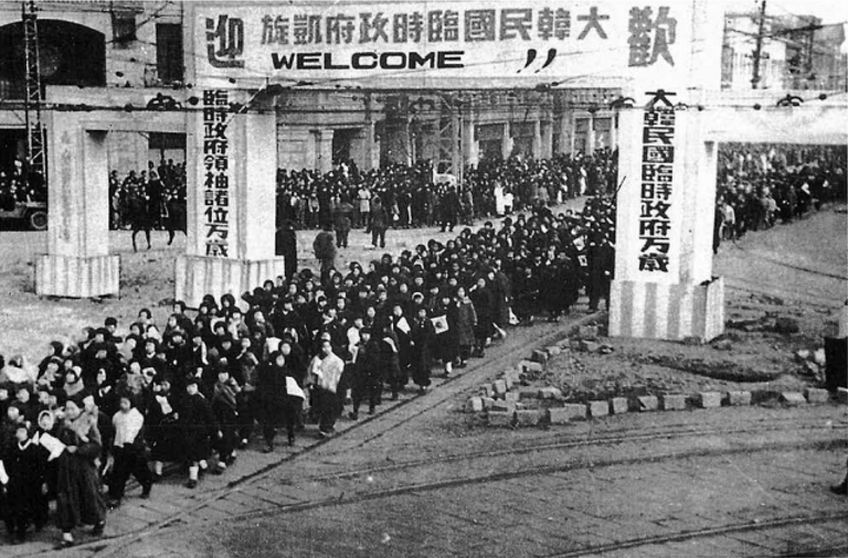 해방후활동 12월 6일, 서울에서는 「 대한민국임시정부 」 환영식을 거국적으로 개최했다. 페이지 정보 본문 12월 6일, 서울에서는 「 대한민국임시정부 」 환영식을 거국적으로 개최했다. 사진은 식장에 참석한 학생들의 시가행진 > 1945년 12월 6일 「임정」 환영식을 마치고 거리를 누빈 환영 가두행진. (上) 「임정」 환영 꽃전차. (下) 목록 이전글중경을 떠나기 앞서 연화지 「 임정 」 청사 앞에서 찍은 「 한국독립당 」 요인과 당원들 20.01.15 다음글「 임정 」 청사를 떠나기 앞서 찍은 임정요인들과 직원들의 기념 사진 20.01.15